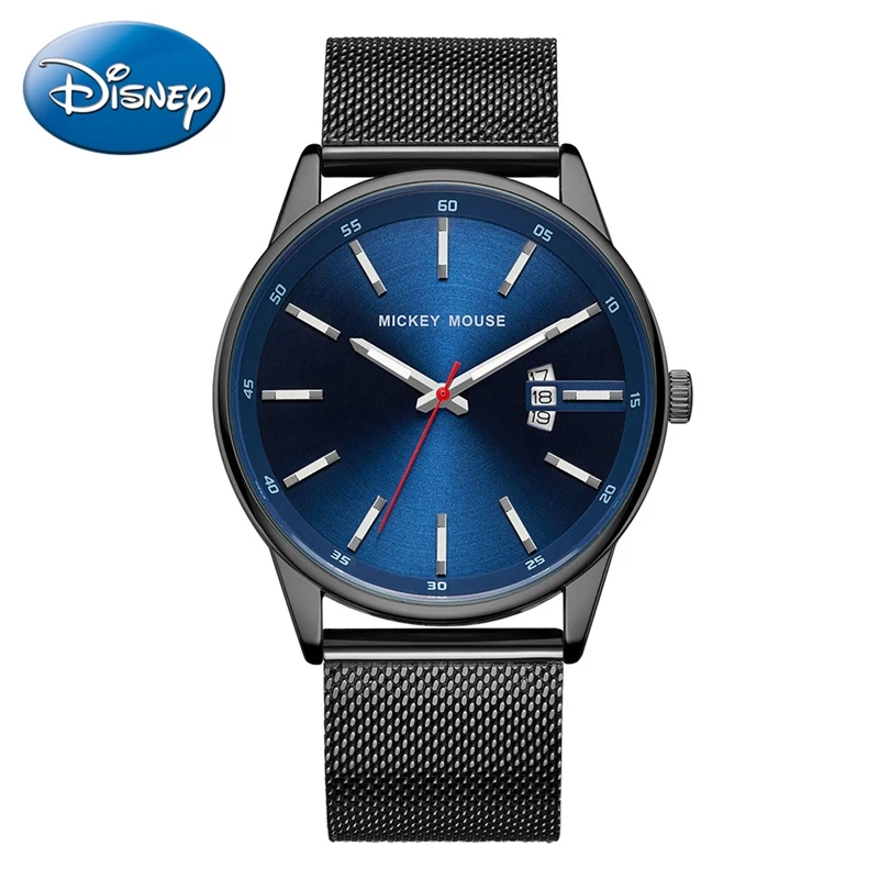 Promo Stainless Steel Mesh Band Men Fashion Sports Waterproof Calendar Watches Top Brand Disney Mickey Mo